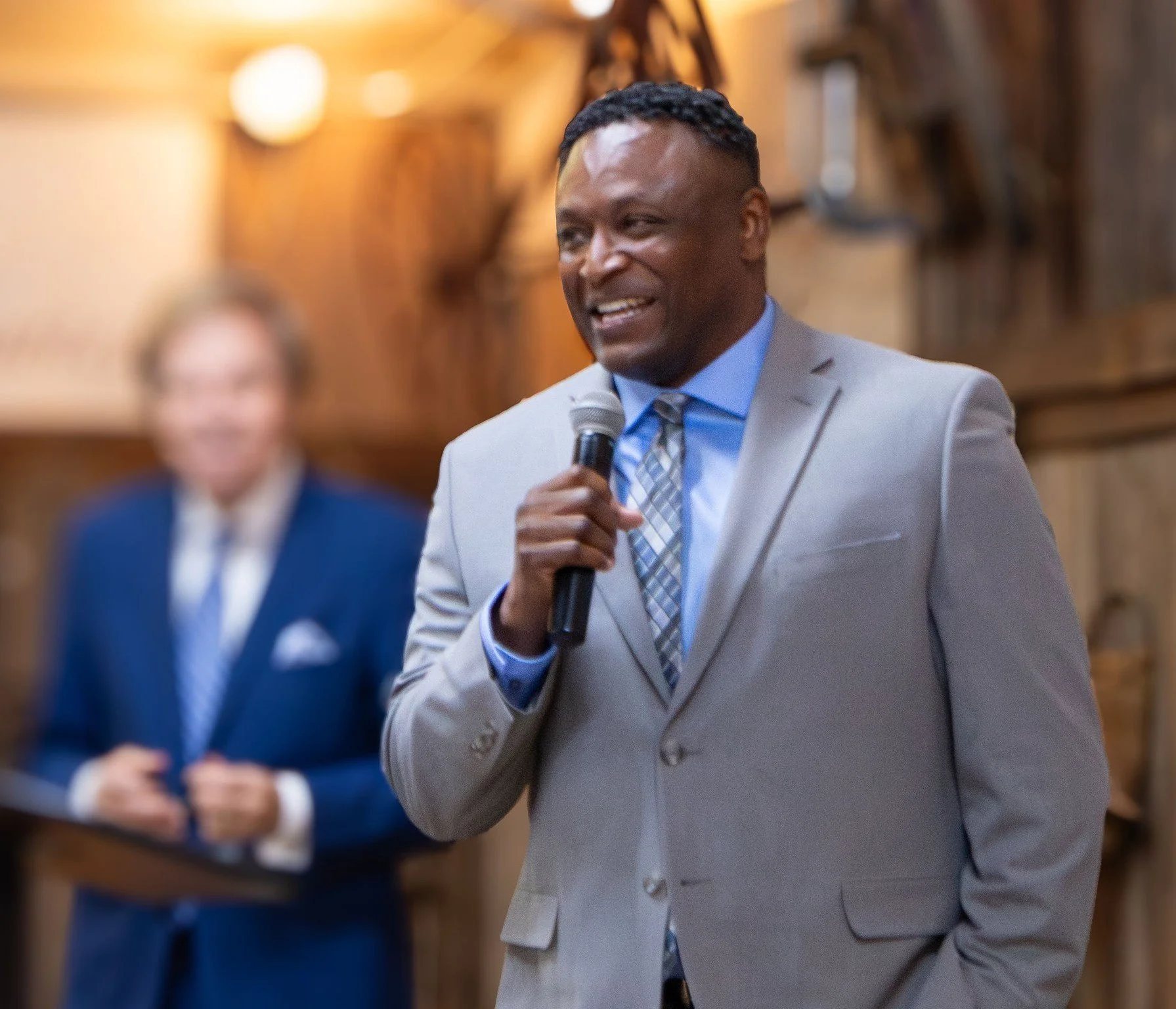 Pictured: Claude Mathis (speaking) and Scott Murray (background).